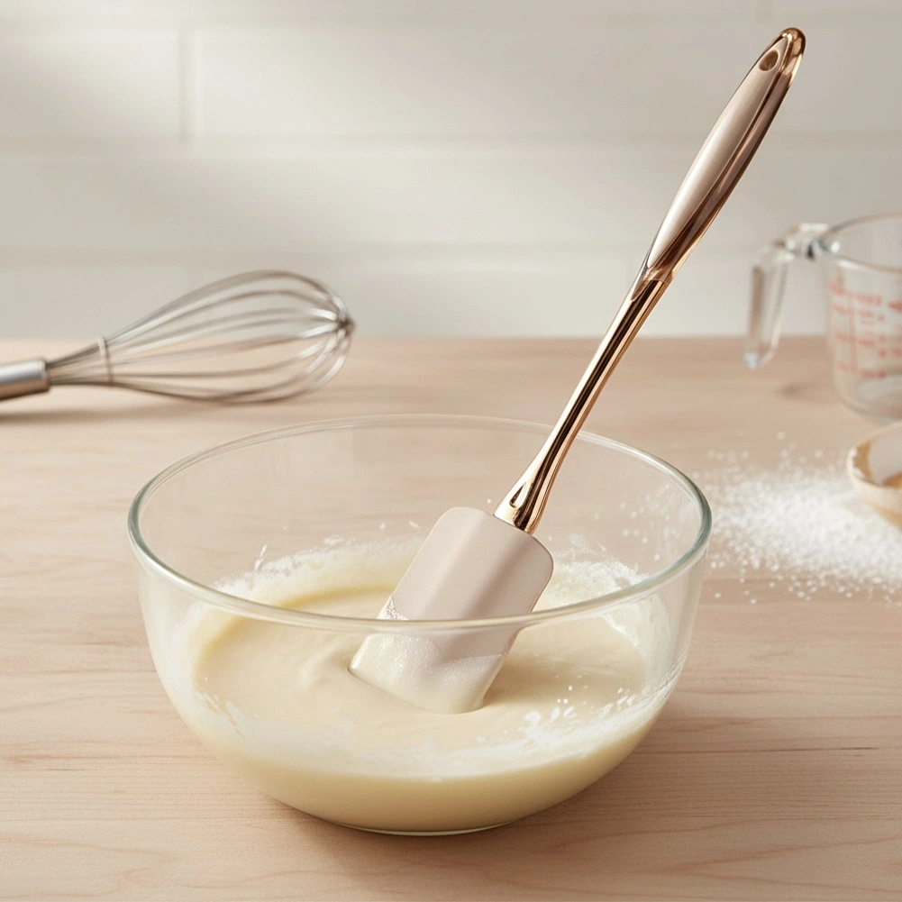 La longue poignée et la rigidité optimale de la spatule facilitent le mélange, le pliage et le transfert des préparations. Fonctionne parfaitement dans les bols, casseroles et poêles antiadhésives.