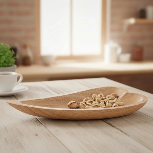 Une assiette de service élégante en bois de manguier naturel, au design en forme de feuille/cœur, idéale pour présenter snacks, desserts et entrées. Grâce à ses dimensions 38 × 15,5 × 3,5 cm, elle est parfaite pour les fruits à coque, biscuits ou fruits, tout en embellissant votre table. Bois de manguier naturel, fabrication résistante et veinage unique apportent une touche à la fois rustique et moderne à votre dressage.