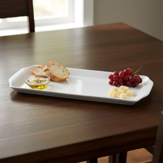 Élégante assiette de service en porcelaine de haute qualité, de couleur blanche, pour présenter avec style des amuse-bouches, fromages, desserts ou tapas. Grâce à ses dimensions de 36 × 15,5 × 2,3 cm, elle offre suffisamment d’espace et son design minimaliste s’adapte à toutes les tables – au quotidien comme pour les moments festifs. Porcelaine résistante, look moderne, compatible lave-vaisselle et micro-ondes.