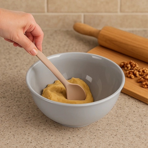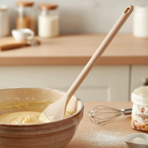 Cuillère en silicone pratique de 28 cm pour la cuisine et la pâtisserie au quotidien. Elle est douce avec les ustensiles antiadhésifs, résistante à la chaleur et facile à nettoyer – idéale pour mélanger, servir et prélever les plats.