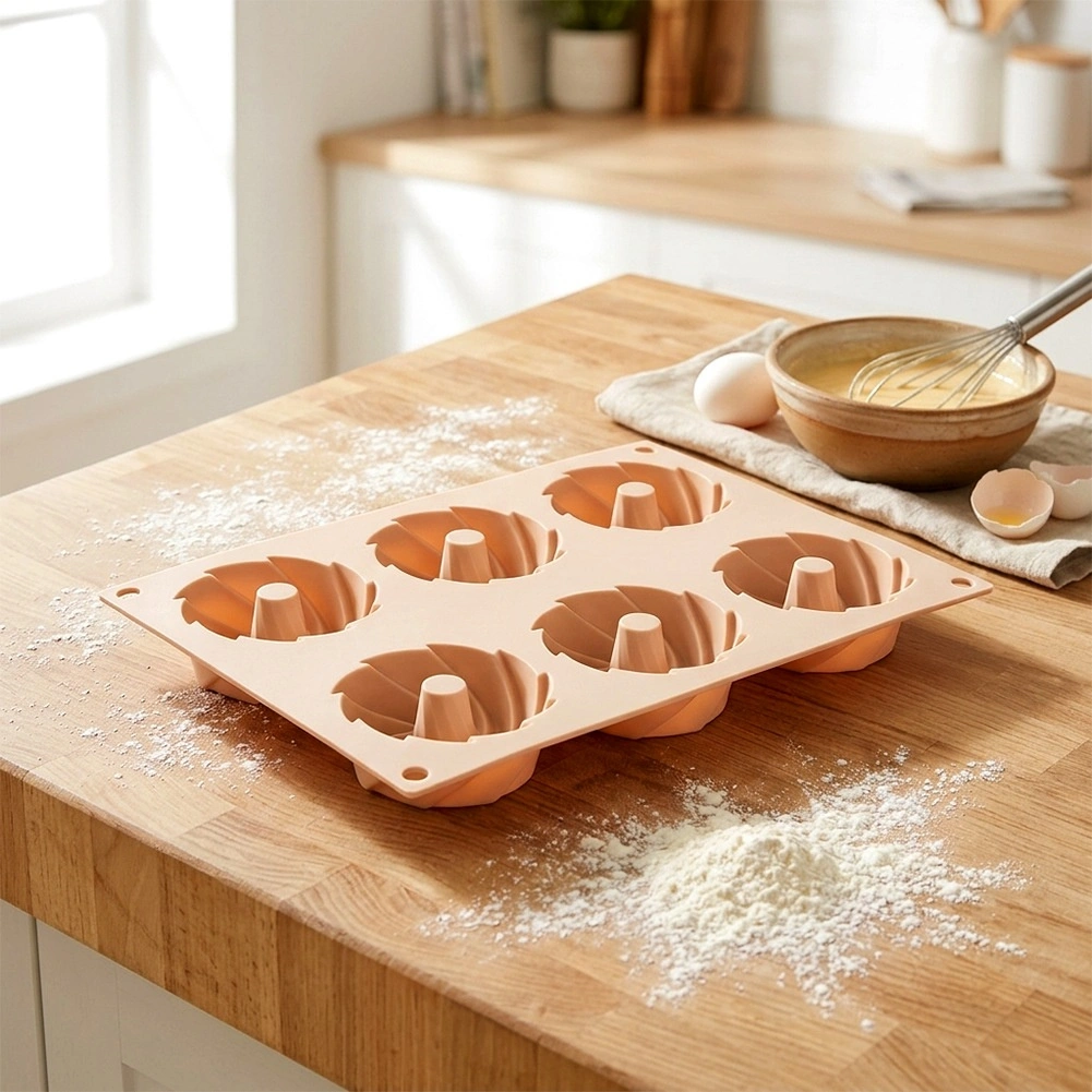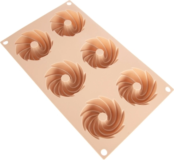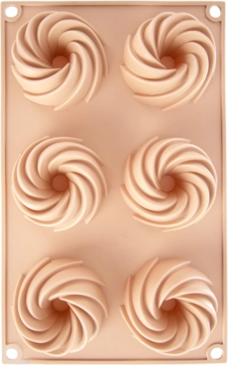 Découvrez la commodité de la cuisson avec ce moule en silicone flexible dans une élégante teinte beige. Les six cavités avec cheminée centrale créent une forme décorative de couronne qui fait toujours sensation sur la table. Le matériau est antiadhésif, résistant à la déformation et n’absorbe pas les odeurs, ce qui permet de démouler la pâte facilement sans ajouter de matière grasse superflue.
