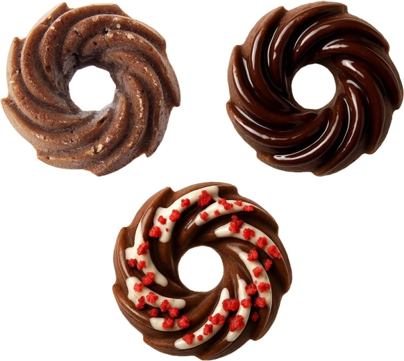 Chaque alvéole possède un renflement central qui assure une meilleure circulation de la chaleur et un attrayant format en couronne. Idéal pour muffins, mini kouglofs et donuts.