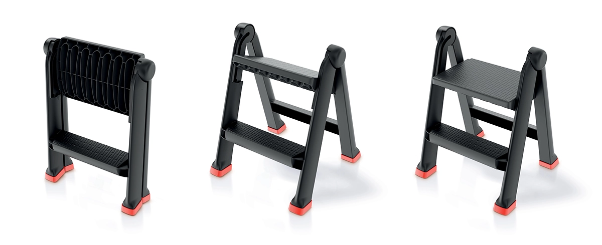 Les marchepieds se plient à plat en un instant – idéal pour gagner de la place dans le cellier, l’armoire ou le coffre de la voiture.
