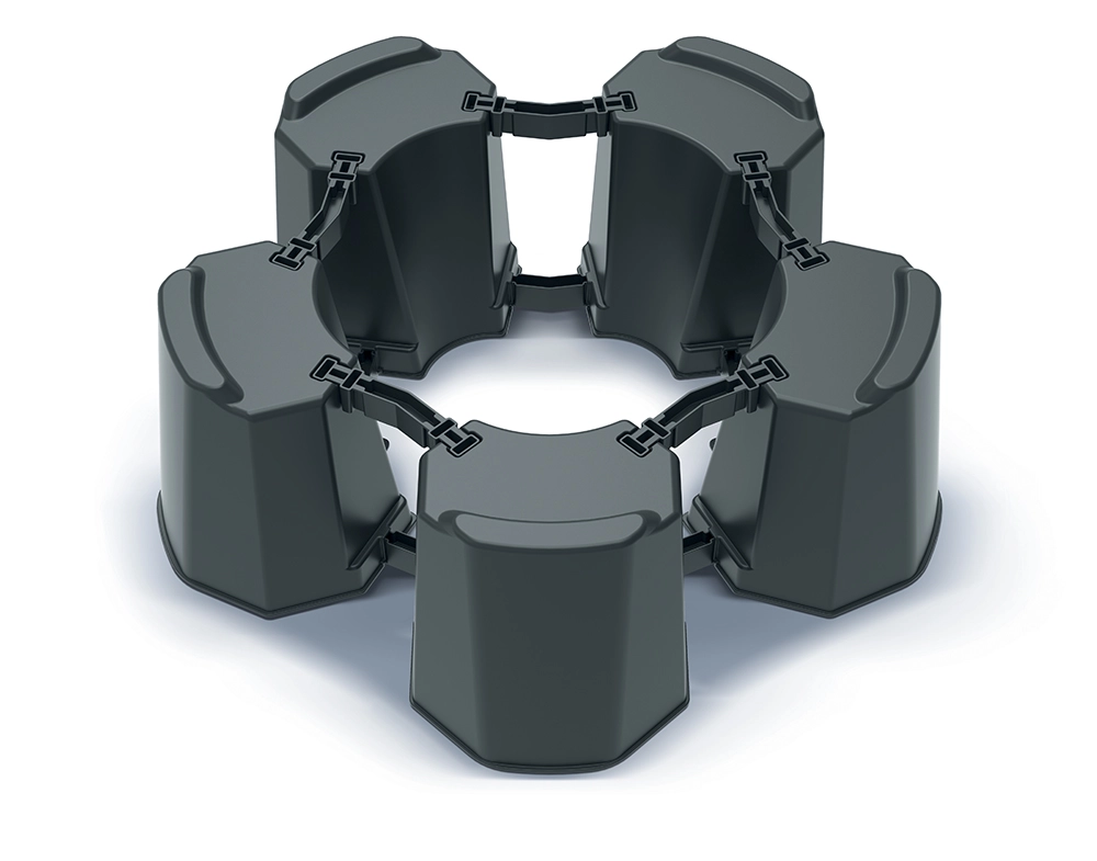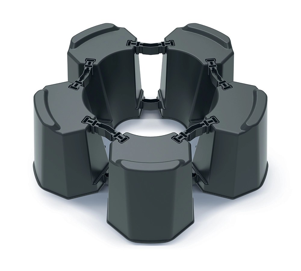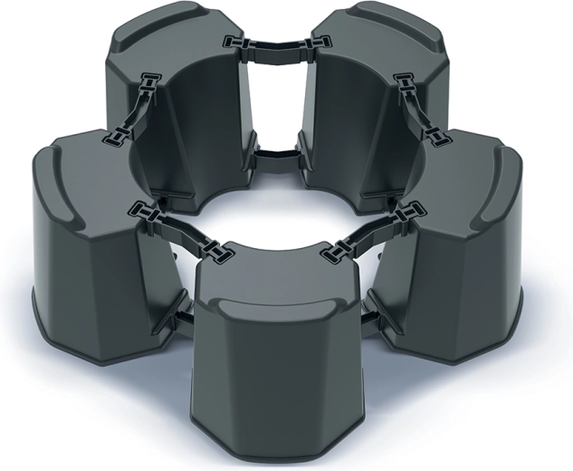 Grâce aux segments et raccords intelligemment conçus, vous ajustez facilement le diamètre du support à la taille du tonneau. Le plastique résistant supporte les intempéries et les UV et offre une longue durée de vie sans entretien exigeant.