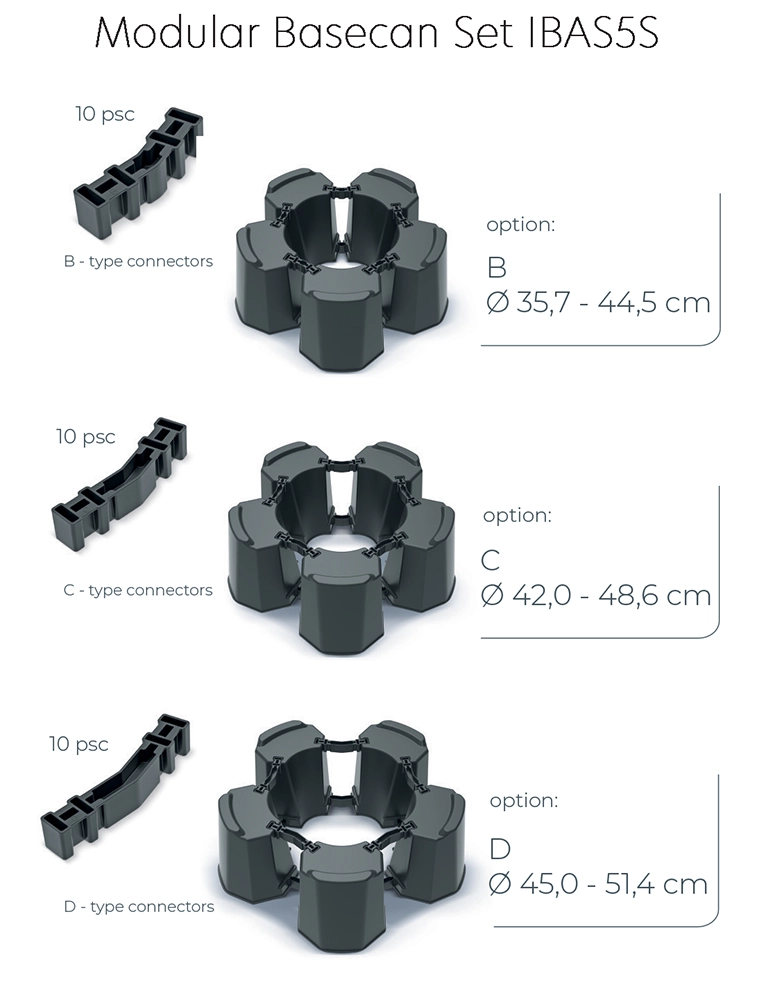Ø 35,7–44,5 cm – 5 modules + 10 raccords « B »