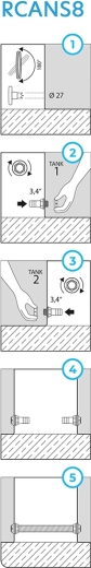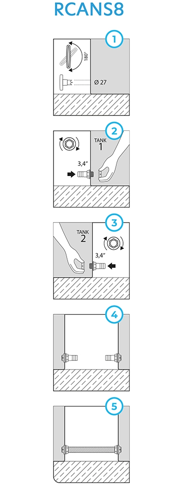- Éléments de raccordement pour relier le collecteur d’eau de pluie au tonneau; Joints d’étanchéité contre les fuites; Foret manuel pour réaliser l’ouverture; Tube de montage d’un diamètre de 3/4"
