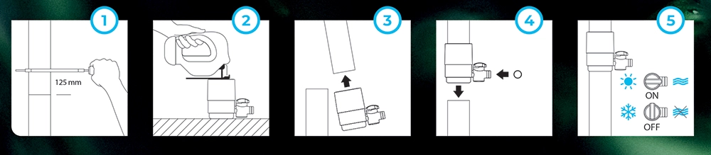 Le pratique commutateur de mode été/hiver facilite l’utilisation saisonnière et protège le système contre les dommages dus au gel. Le trop-plein avec contre-courant empêche en outre le débordement de la cuve et aide à maintenir un flux d’eau régulier. L’installation se fait rapidement et sans outils spéciaux. Pour des performances optimales, le kit convient aux toitures d’environ 50 m².