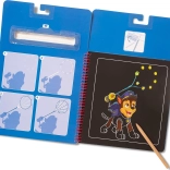 Inclus: stylet en bois, pochoirs et autocollants. Les enfants peuvent décalquer des formes, créer des petites scènes et développer leur motricité fine.