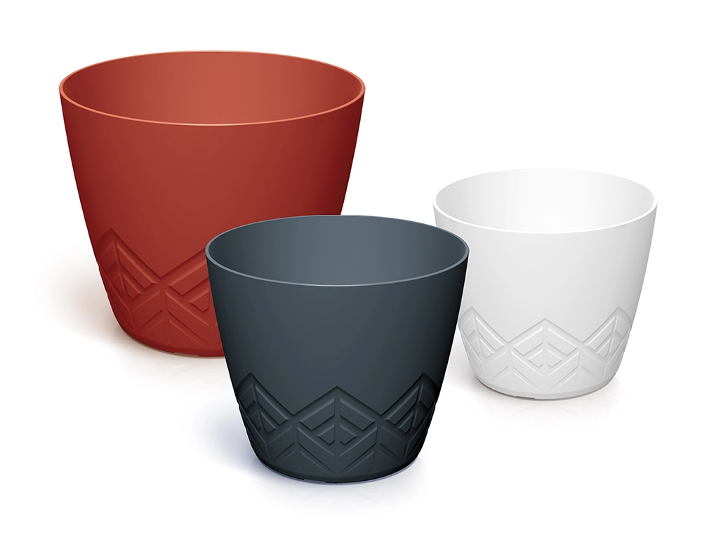 La surface mate subtile et le relief de triangles et de flèches font de ce pot un accessoire élégant pour chaque maison.