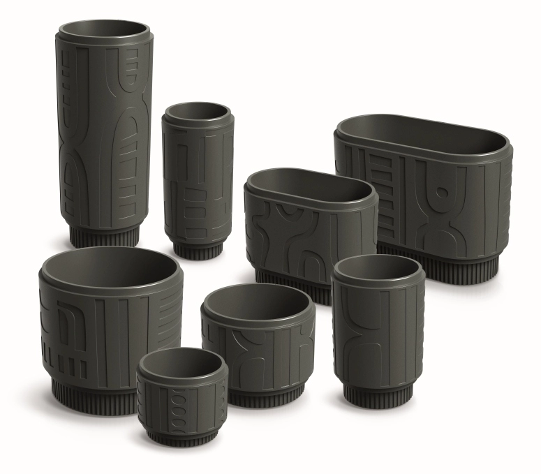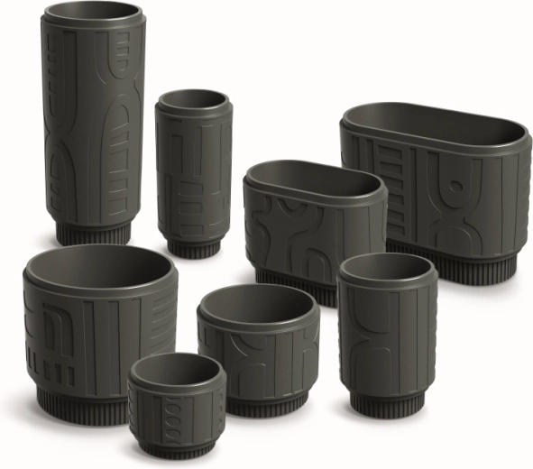 Surface texturée inspirée de l’Art déco et de motifs tribaux qui met en valeur vos plantes et attire le regard dans tout espace.