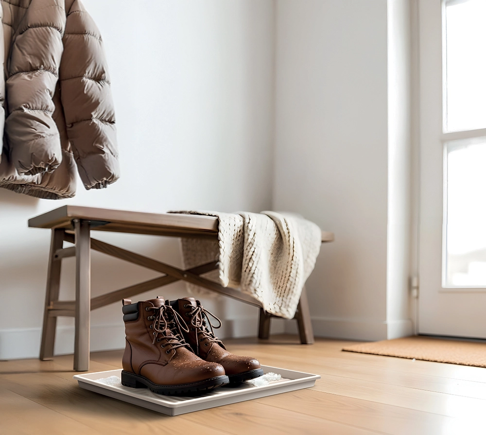 Utilisez-le comme égouttoir pour chaussures mouillées, base stable sous les gamelles d’eau et de nourriture ou comme surface de travail propre pour le rempotage des plantes. Grâce à son design universel, il s’intègre à différents intérieurs et aide à maintenir l’ordre.