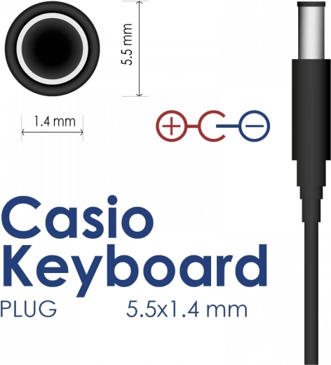 Vous cherchez une alimentation fiable pour vos claviers CASIO ? Cet adaptateur de qualité avec des spécifications 9 V / 1 A (9 W) fournit un courant stable et protège l’instrument lors d’une utilisation quotidienne comme en concert. Grâce au connecteur DC 5,5 × 1,4 mm universel, il convient parfaitement à une large gamme d’anciens modèles de claviers CASIO.