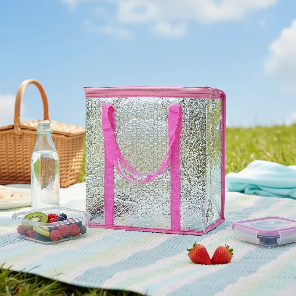 Pratique, le sac isotherme 35 × 28 × 17 cm garde vos aliments et boissons frais plus longtemps. Grâce à sa feuille isolante thermique, sa fermeture zippée et ses bandoulières robustes, il est idéal pour les pique-niques, les courses et l’usage quotidien.