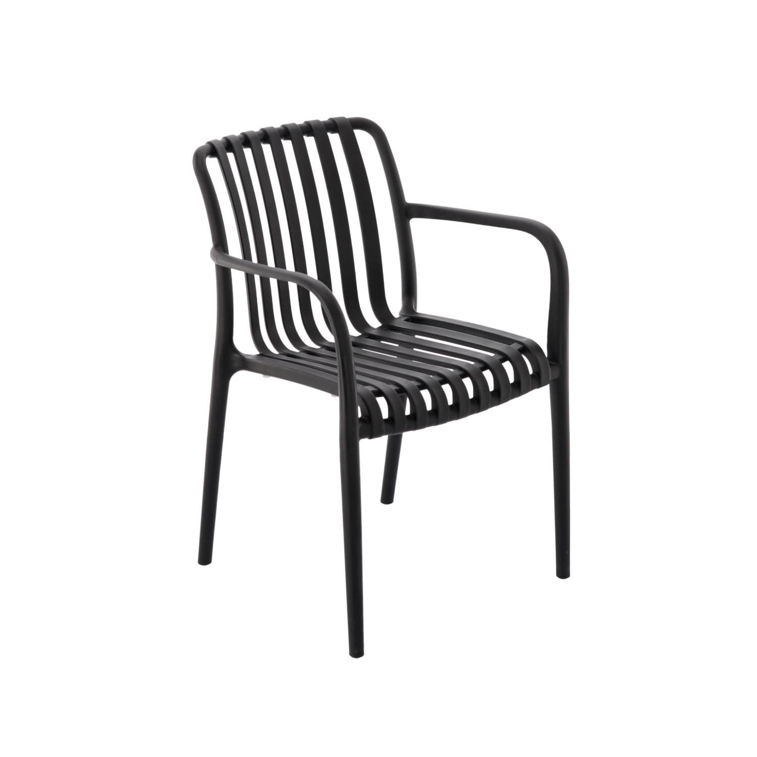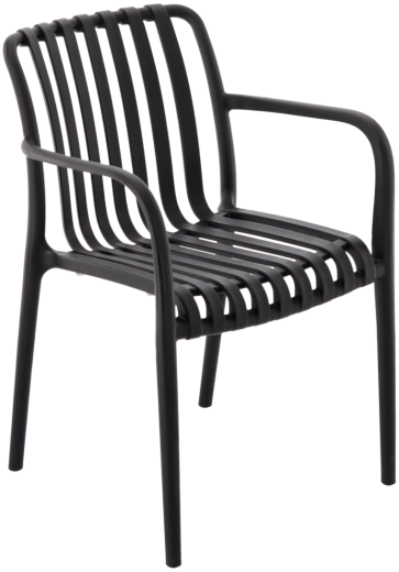 Chaise de jardin élégante et résistante en plastique de haute qualité, coloris noir, avec filtre UV. Parfaite pour le jardin, la terrasse et le balcon, elle offre une forme ergonomique pour un assise confortable, est résistante aux intempéries et facile à nettoyer. Charge maximale 110 kg.