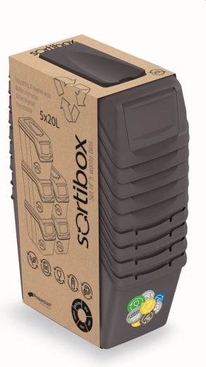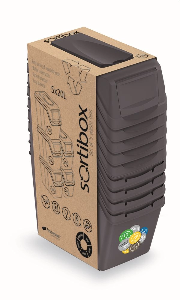 Pratique, l’ensemble de cinq bacs de tri SORTIBOX d’un volume de 5×20 l facilite le tri des déchets ménagers. Grâce à sa construction modulaire et à sa facile empilabilité, vous gagnez de la place tout en restant organisé. L’élégante couleur anthracite s’intègre parfaitement dans un intérieur moderne.