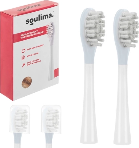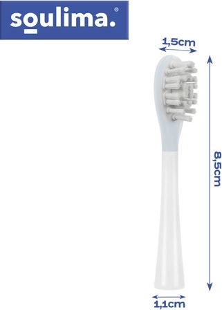 Les têtes de rechange d’origine SOULIMA sont conçues pour une compatibilité parfaite avec le modèle X800 et un brossage quotidien confortable. La combinaison de duretés douce (soft) et moyenne (medium) vous permet d’adapter les soins à vos besoins du moment – des gencives sensibles jusqu’au nettoyage plus approfondi de l’émail.