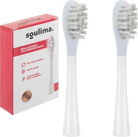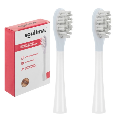Offrez-vous une hygiène bucco-dentaire douce et efficace avec les têtes d’origine pour brosse à dents sonique SOULIMA X800. L’emballage contient 2 têtes de rechange de duretés différentes, soft et medium, pour des besoins individuels. Les brins denses en DuPont éliminent efficacement la plaque dentaire, prennent soin des gencives et contribuent à préserver la blancheur naturelle des dents.