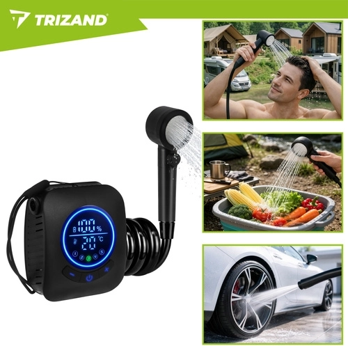 La douche portable TRIZAND avec une batterie de 8000 mAh vous assure un accès pratique à l’eau partout – en camping, à la plage ou au jardin. Elle offre une pompe puissante 5–10 l/min, 5 niveaux de pression et 4 modes de jet pour un confort maximal. Son écran LED moderne affiche la température de l’eau et l’état de la batterie, tandis que l’étanchéité IPX8 et la charge via USB 5 V garantissent une utilisation sûre et facile même sur le terrain.