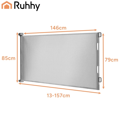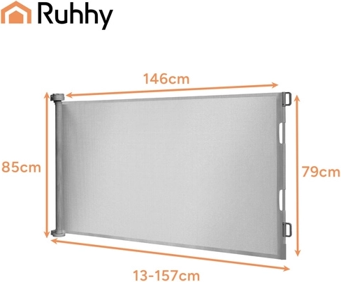 La barrière à enrouleur RUHHY offre une extension fluide jusqu’à 157 cm, ce qui permet de l’adapter facilement aux ouvertures étroites comme larges. La solution sans seuil élimine le risque de trébuchement et, une fois repliée, elle occupe un minimum d’espace. Grâce à la combinaison d’un rideau en PVC, de tubes en aluminium et de plastiques robustes, la barrière est stable et durable pour une utilisation quotidienne.