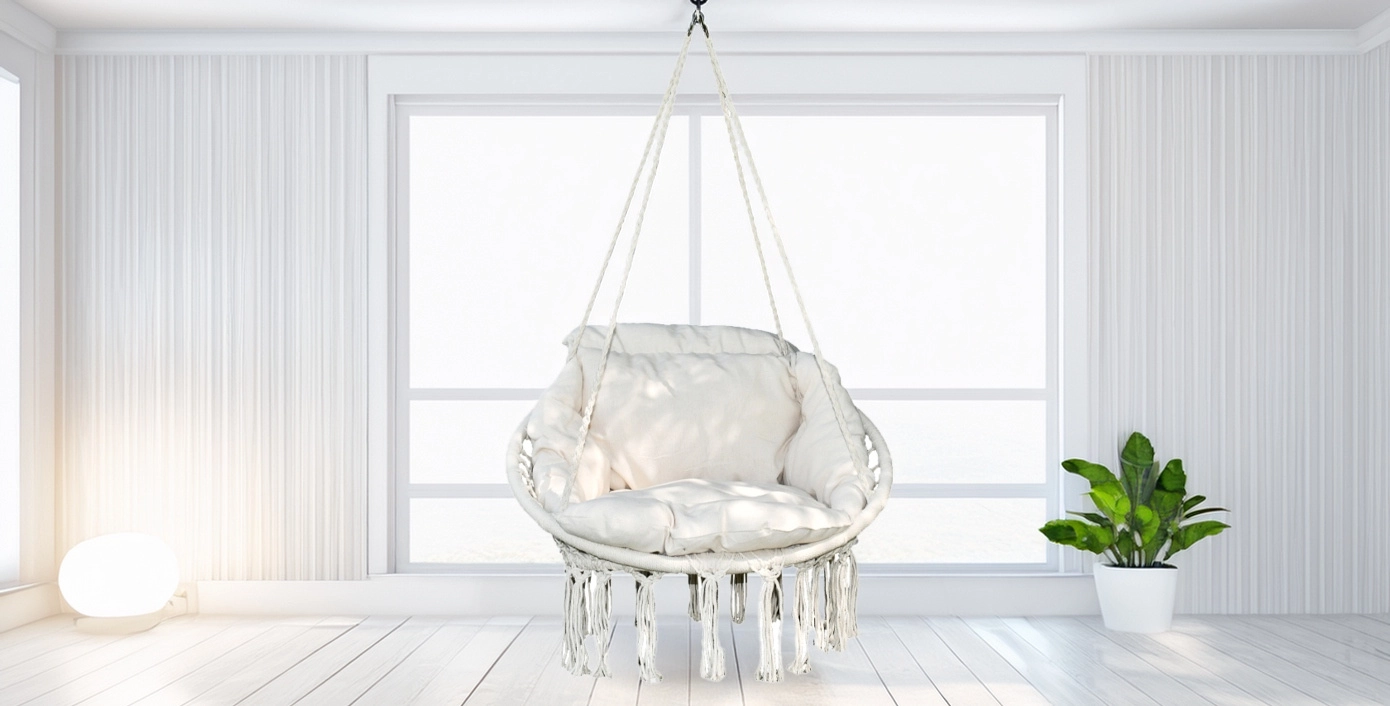 Créez votre coin calme pour lire, vous reposer et vous balancer en douceur. Le fauteuil suspendu nid avec son coussin duveteux apporte confort et atmosphère chaleureuse au salon, à la chambre ou sur une terrasse couverte. Grâce à ses couleurs neutres, il s’harmonise aisément avec un intérieur moderne ou bohème.