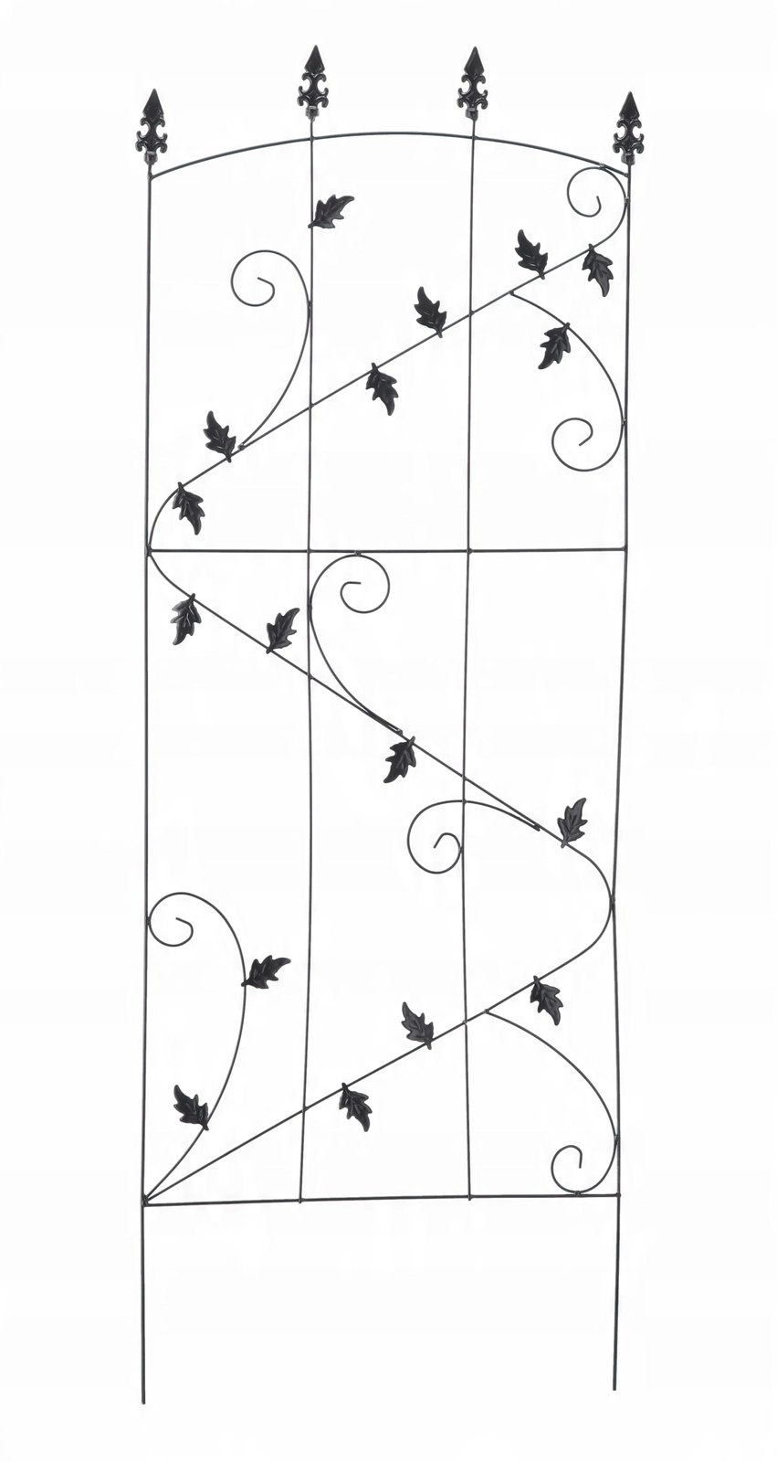 Ce support élégant en métal pour plantes grimpantes, de dimensions 60 × 167 cm, assure à vos fleurs et jeunes pousses de vigne la stabilité nécessaire et les guide harmonieusement dans leur croissance. Grâce à sa structure métallique robuste et à sa finition noire résistante, il est idéal pour les massifs, les bacs à fleurs et le long des clôtures. Il protège efficacement du vent, favorise une croissance plus rapide et plus saine et constitue en même temps un élément décoratif pour tout jardin, terrasse ou balcon.