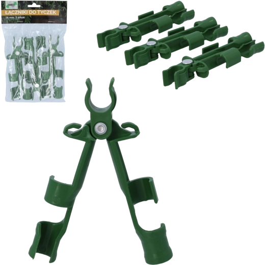 Pratique set de trois connecteurs de jardin pour tuteurs de 16 mm de diamètre assurant une liaison solide et un soutien stable des plantes. Le plastique résistant est léger, résistant aux intempéries et permet une installation facile sans outils pour un montage rapide de treillis, cadres et supports.