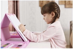 L'espace de dessin permet à deux enfants de créer ensemble grâce à l'organisateur double face. Asseyez les enfants face à face et profitez de moments créatifs communs.