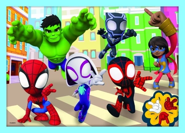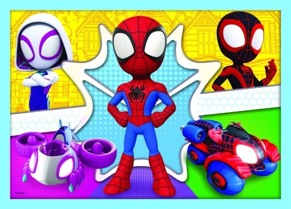 Découvrez l’univers coloré des super-héros avec le coffret de puzzles 4 en 1 mettant en scène Spidey et ses amis. Chacun des quatre puzzles comporte un nombre de pièces différent, permettant aux enfants d’augmenter progressivement leurs compétences et leur confiance. Une fois assemblés, vous obtiendrez quatre images de 285 × 205 mm, idéales pour les petites mains.