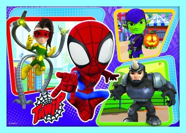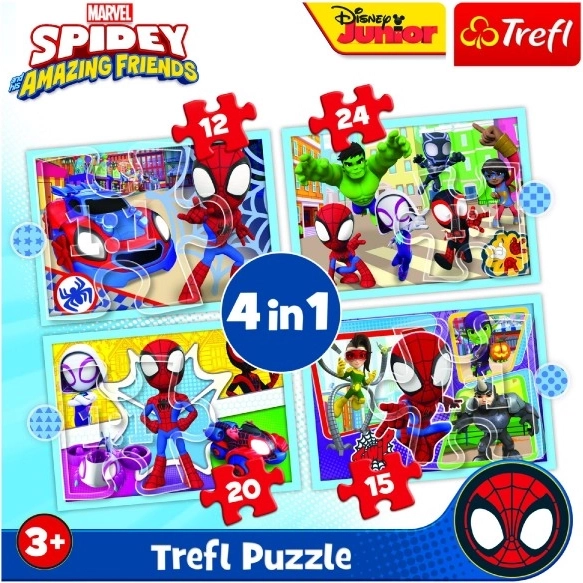 Coffret pour enfants avec 4 puzzles en 1 aux motifs MARVEL Spidey and His Amazing Friends, apportant amusement et apprentissage dès 3 ans. Les niveaux de difficulté variés (12, 15, 20 et 24 pièces) favorisent le développement de la motricité, de la logique et de la patience. Une fabrication de qualité et des matériaux écologiques garantissent un jeu sûr et durable.