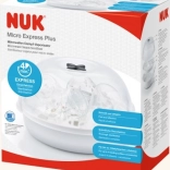 NUK Micro Express Plus est un stérilisateur vapeur pour four à micro-ondes qui assure une désinfection fiable des biberons et accessoires en quelques minutes. Grâce à son support intelligent, il accueille jusqu’à 4 biberons de 300 ml à large goulot et les maintient dans la bonne position pour un séchage efficace. Le couvercle transparent et le nouveau système de verrouillage garantissent une utilisation sûre et claire.
