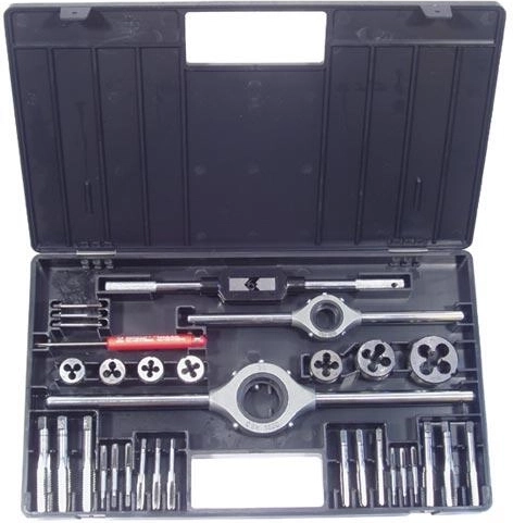 Jeu universel pour filetages métriques M3–M12 en acier à outils allié, offrant un équipement complet pour un filetage précis intérieur et extérieur. Idéal pour bricoleurs et professionnels, avec une sélection pratique de tarauds, filières et accessoires dans un étui robuste.