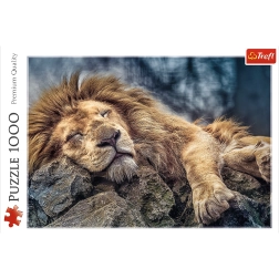 Puzzle avec le motif du lion endormi contenant 1000 pièces et une fois assemblé, il crée une image de dimensions 68x48 cm. Couleurs intenses et de haute qualité, la sécurité de l'assemblage est assurée par du papier avec des encres alimentaires écologiques.