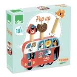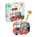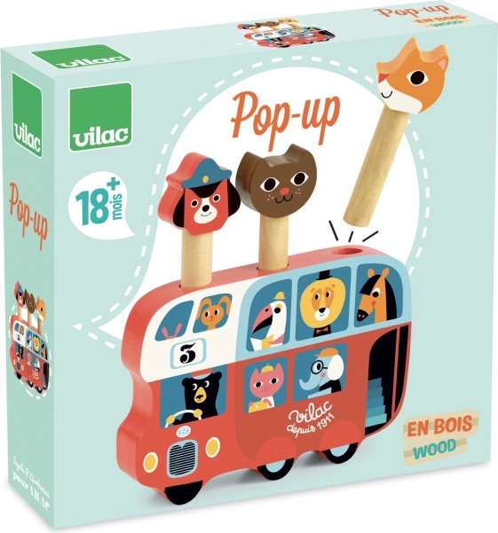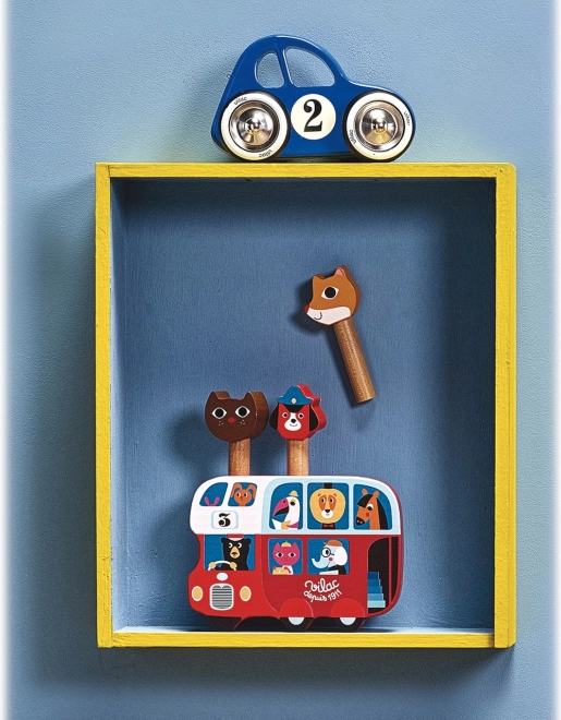 Vilac Jeu de bus à ressort en bois avec des animaux est un magnifique jouet avec des illustrations de la célèbre artiste Ingela P. Arrhenius. Trois personnages adorables – un renard, un chien et un chat – sautent hors du bus, ce qui amusera assurément les enfants.