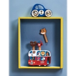 Le jeu de bus à ressort en bois avec des animaux est conçu par l'artiste Ingela P. Arrhenius, connue pour son approche passionnée du style rétro. Ce jouet est fabriqué de manière écologique avec un accent sur le respect de l'environnement. Le bus contient des figurines de divers animaux que les enfants peuvent facilement manipuler et faire sauter. Le jouet encourage la motricité et l'imagination des enfants.