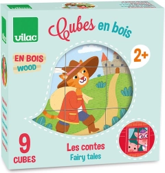 Découvrez la magie des contes classiques avec les cubes en bois Vilac Histoires. Neuf cubes de qualité aux belles illustrations permettent aux enfants de composer jusqu’à six grandes images tirées de contes favoris comme La Petite Sirène, Le Chat botté ou Hansel et Gretel. Ce jouet stimule la pensée logique, la motricité fine et la perception visuelle dès 2 ans.