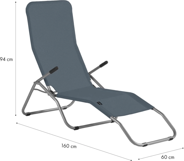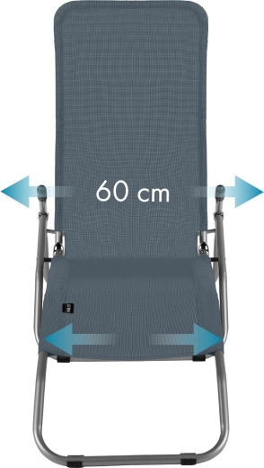 Grâce au réglage en continu de l’inclinaison, vous passez facilement de la position assise à allongée en déplaçant simplement votre centre de gravité. La structure respirante du matériau favorise la circulation de l’air et augmente le confort par temps chaud. La construction est pliable, vous permettant d’emporter rapidement la chaise longue en voyage et de l’utiliser partout.