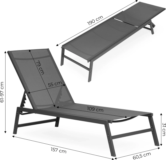 Grâce au réglage 4 positions, vous passez aisément de la position assise à la position totalement allongée – idéale pour bronzer, lire ou faire une sieste. Les pieds antidérapants augmentent la stabilité sur différentes surfaces, et le profil bas offre une montée aisée ainsi qu’un sentiment de sécurité pendant la relaxation.