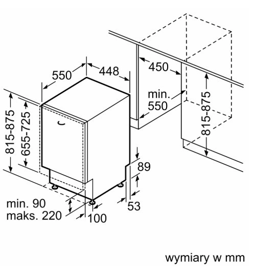 Lave-vaisselle encastrable, entièrement intégrable (étroit)