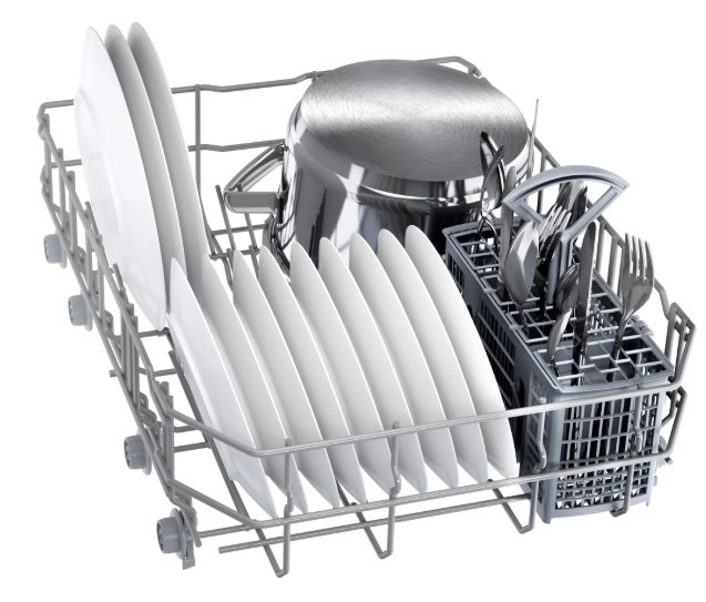 Ce lave-vaisselle encastrable étroit BOSCH Serie 4 est idéal pour les petites cuisines, tout en gérant sans effort la vaisselle du quotidien. Grâce à la connectivité Home Connect, il se connecte facilement à votre téléphone pour afficher l’état du programme et permettre un contrôle à distance. Le panneau de commande intégré en inox est clair et résistant, tandis que la cuve en acier inoxydable garantit longévité et hygiène.