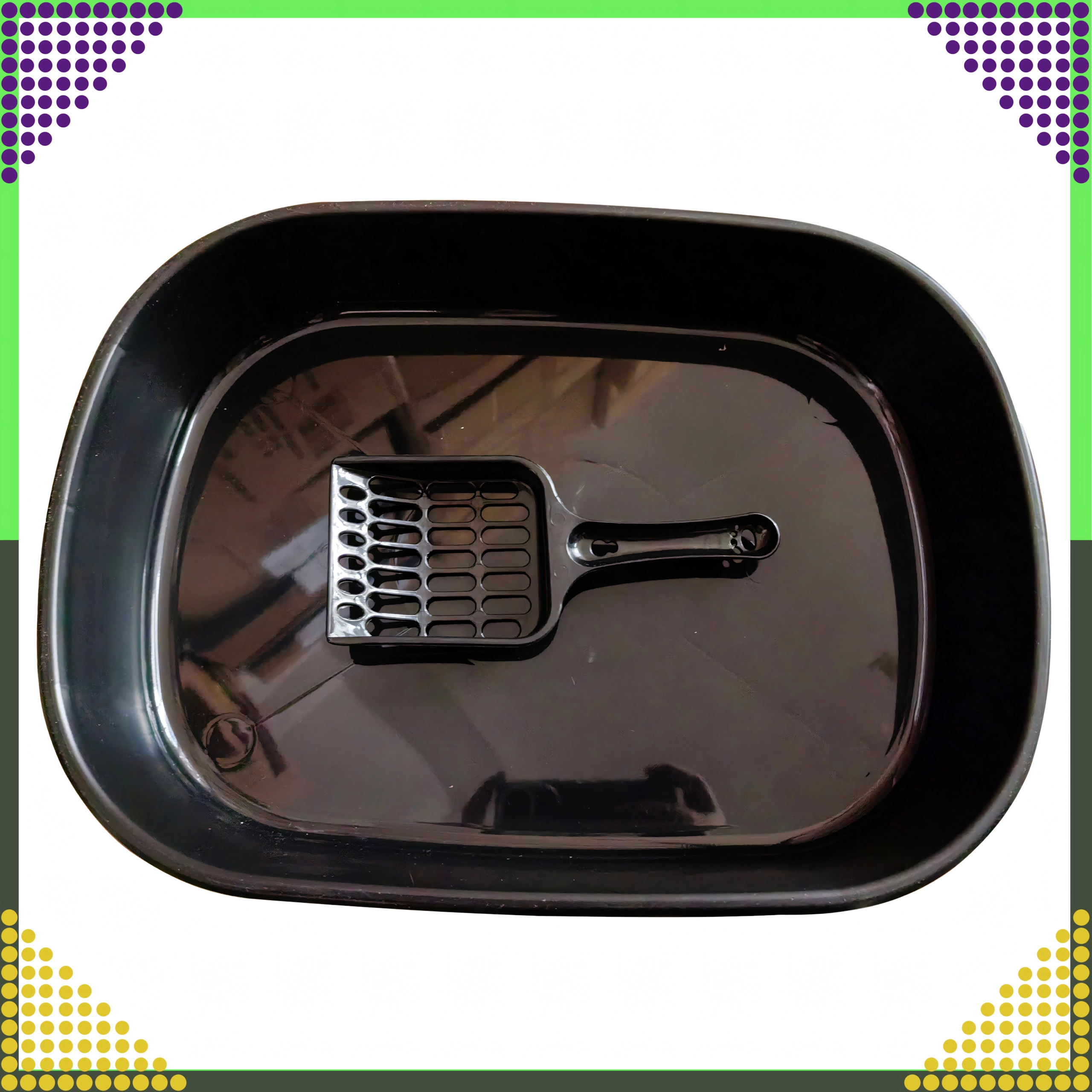 Pratique litière ouverte pour chat avec pelle, en élégante couleur noire. Grâce à ses dimensions compactes et à sa forme arrondie, elle trouve facilement sa place dans n’importe quelle pièce, est sûre et fabriquée en plastique non toxique. La surface lisse et le fond séparé assurent un nettoyage rapide et un remplacement aisé de la litière.
