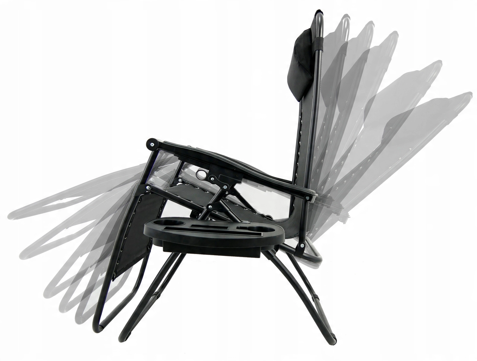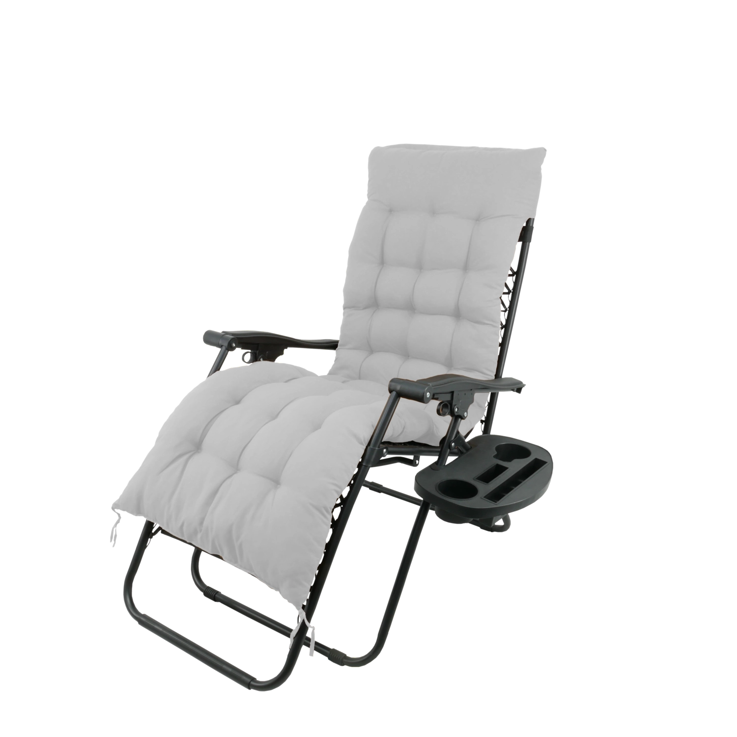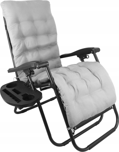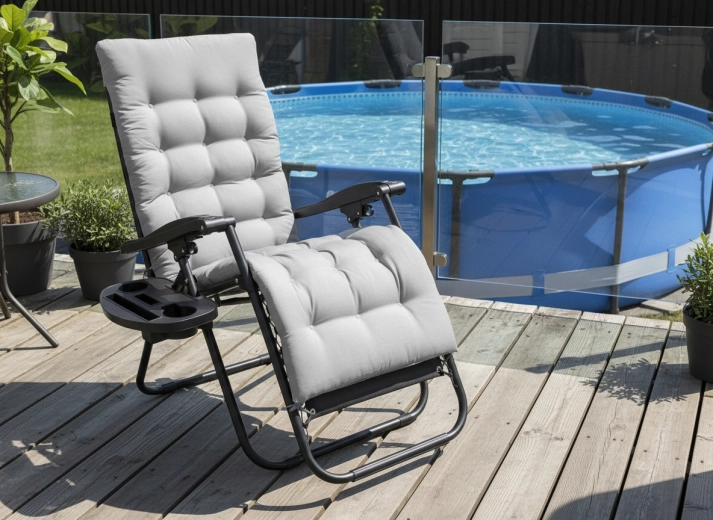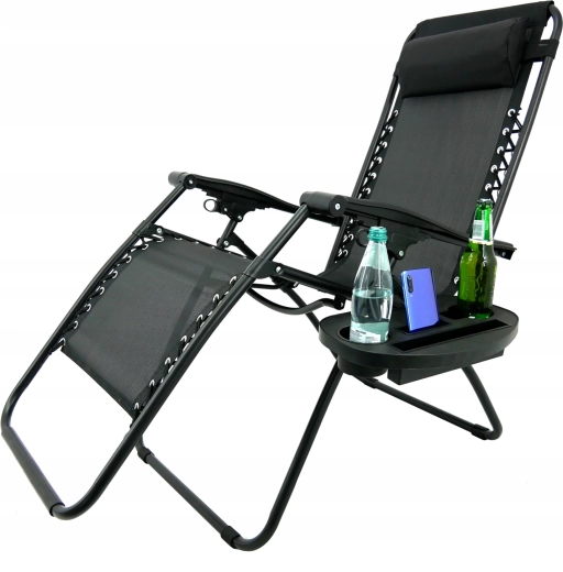 - Praticité : cadre pliant, rangement compact, tablette latérale pour boissons et téléphone.