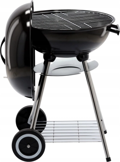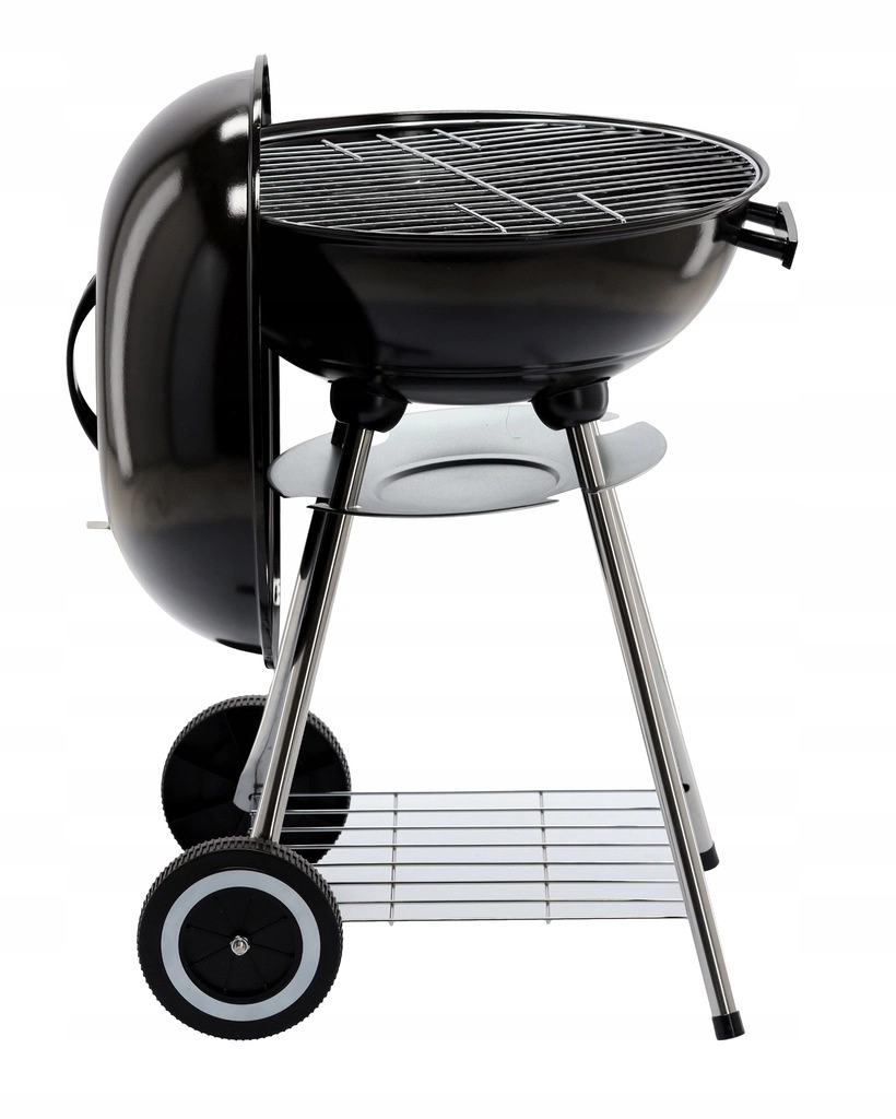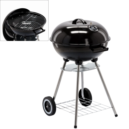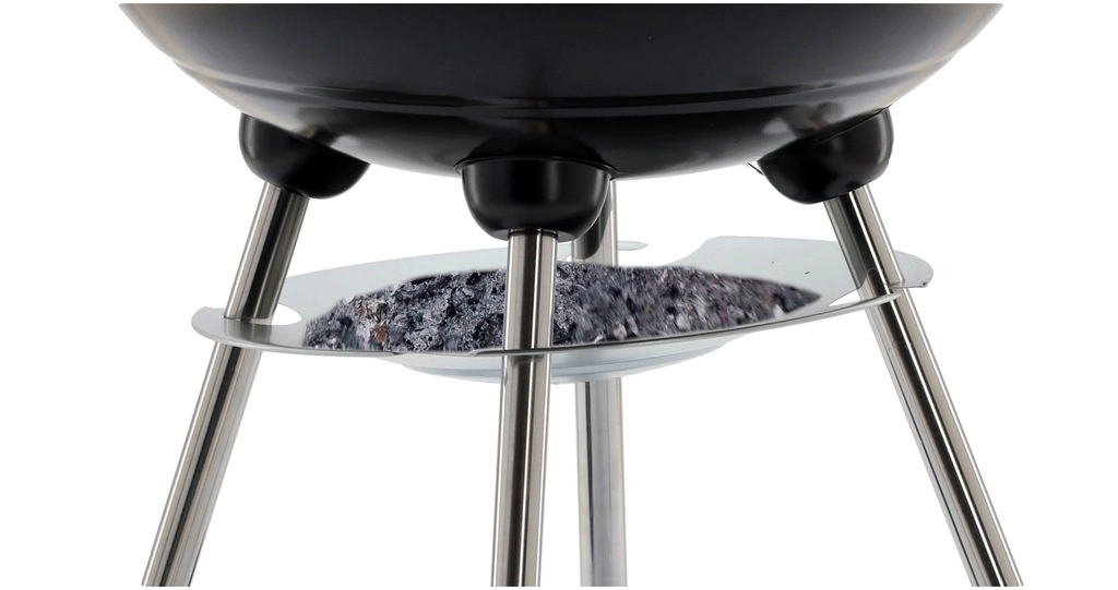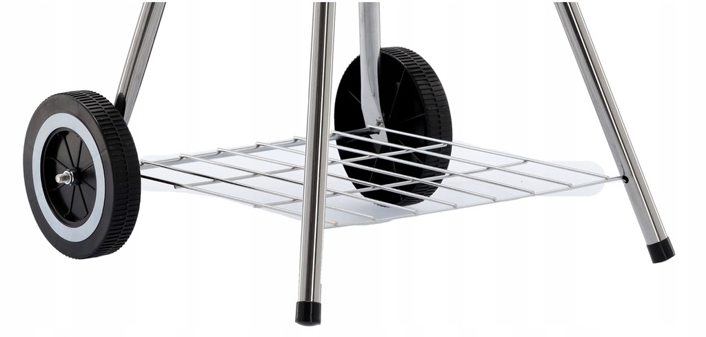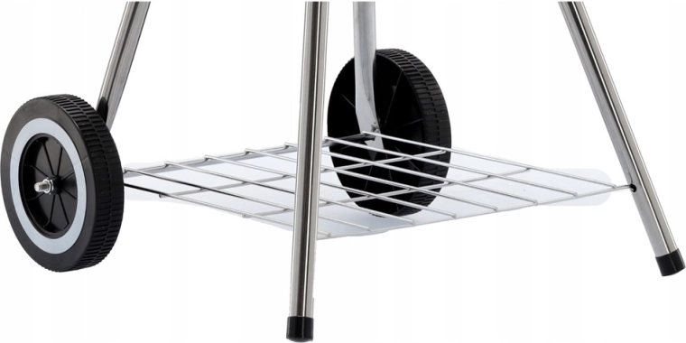Sa conception pratique avec deux roulettes facilite les déplacements, l’étagère inférieure en fil métallique garde combustible et accessoires à portée, et le cendrier simplifie le nettoyage après chaque session de grillade. Le trépied stable avec pieds métalliques assure une bonne assise même sur sol irrégulier.