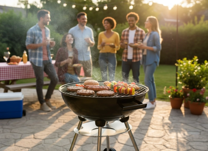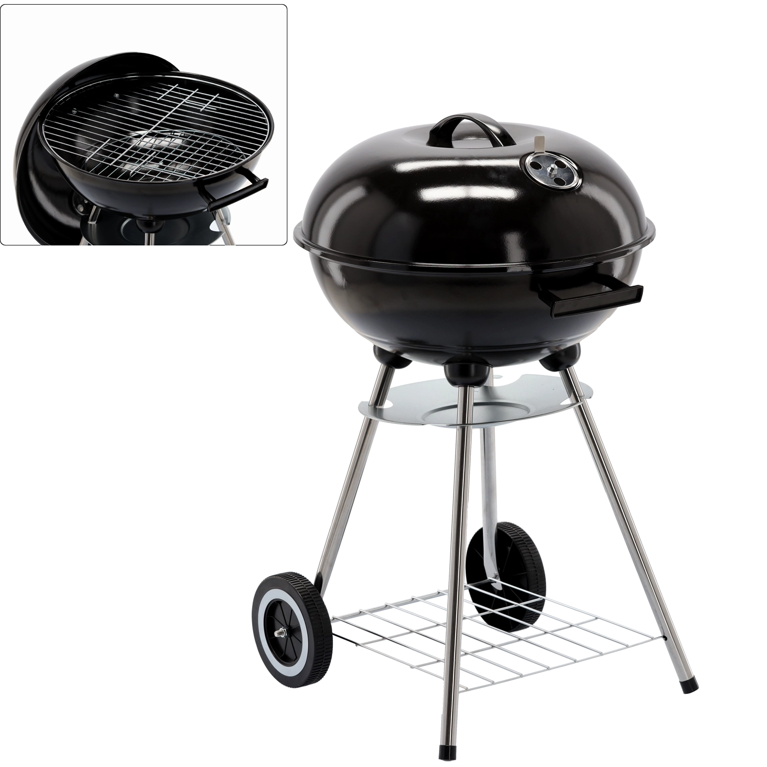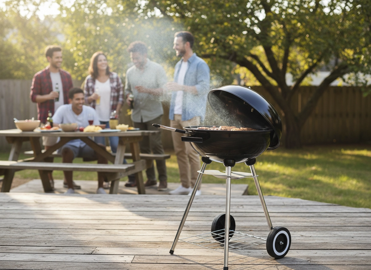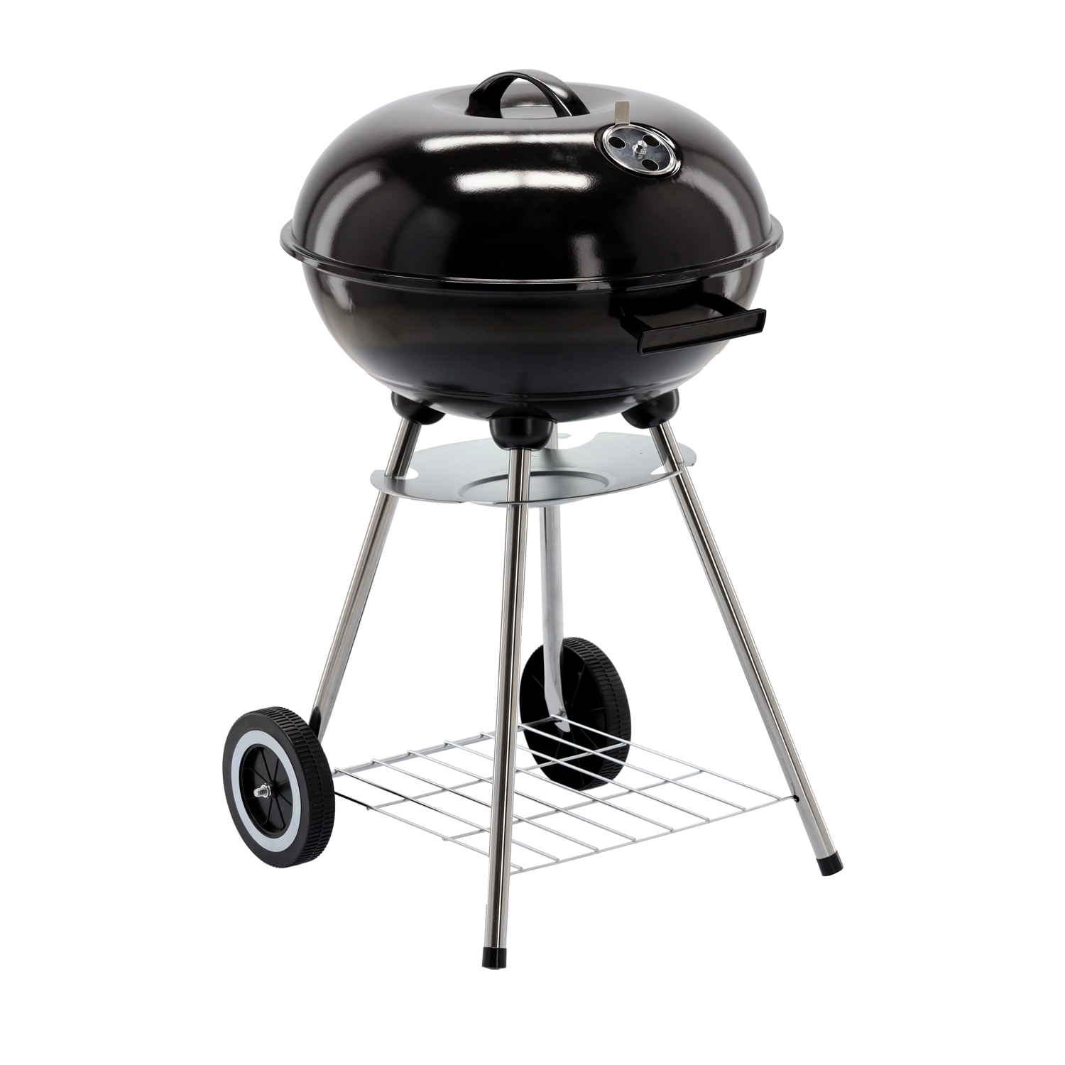 Sa conception pratique avec deux roulettes facilite les déplacements, l’étagère inférieure en fil métallique garde combustible et accessoires à portée, et le cendrier simplifie le nettoyage après chaque session de grillade. Le trépied stable avec pieds métalliques assure une bonne assise même sur sol irrégulier.
