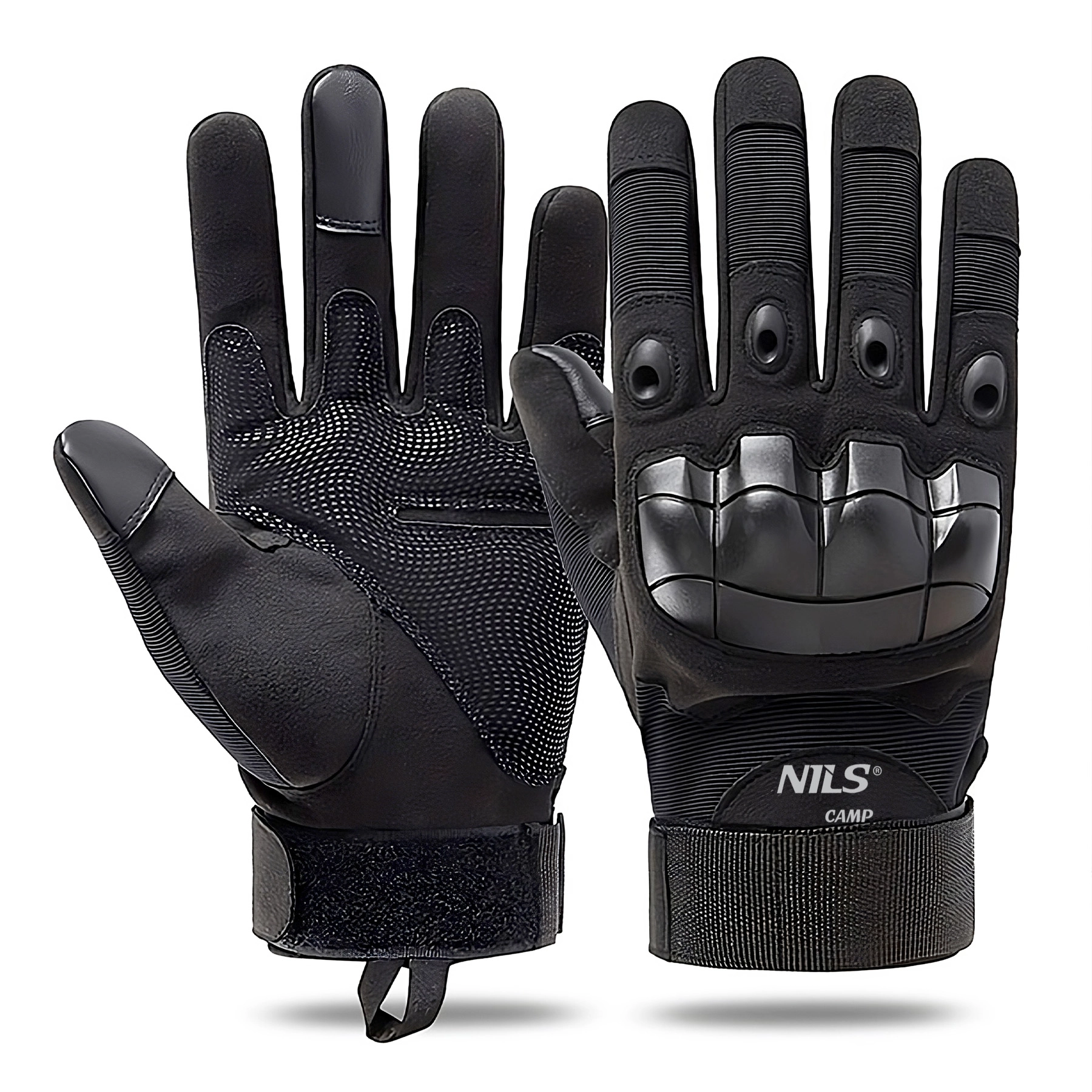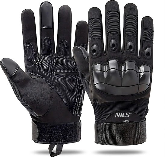 Les gants tactiques NILS Camp sont conçus pour l’outdoor, les activités tactiques et la moto. Leur construction robuste avec renforts aux articulations et aux doigts protège les mains contre les impacts, tandis que la texture antidérapante de la paume garantit une prise sûre des outils et de l’équipement. Le tissu léger et extensible permet des mouvements confortables sans restriction.