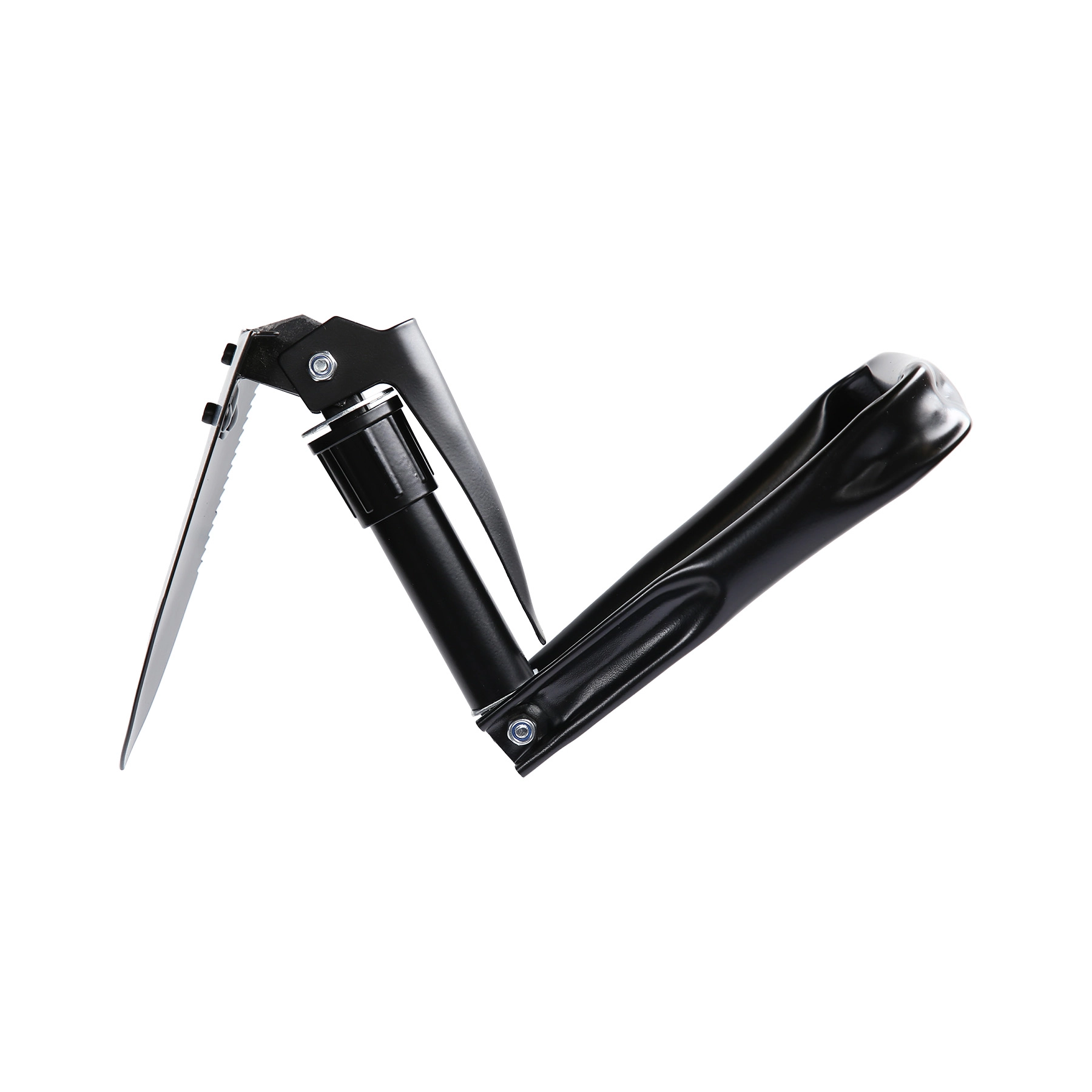 Un seul outil, trois fonctions : bêche pour creuser, lame crantée pour couper racines et branches, et pioche pour terrain dur. Idéale pour le camping et les situations d’urgence.