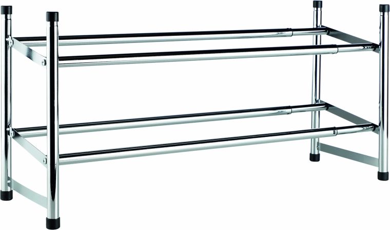 Étagère à chaussures pratique à deux niveaux pour un rangement clair des chaussures dans l’entrée ou le dressing. Grâce à sa largeur réglable et à sa construction en acier chromé, elle offre résistance, stabilité et gain de place.