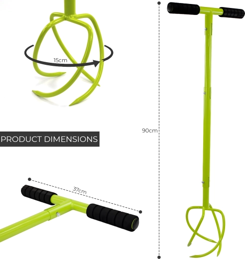 La construction métallique robuste avec dents courbées/hélicoïdales pénètre le sol, brise les mottes et aide à incorporer le compost ou l’engrais. La couleur vive de l’outil améliore sa visibilité au jardin, vous le retrouverez donc toujours facilement.