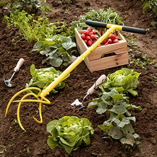 Structure robuste conçue pour le travail quotidien sur les plates-bandes et entre les rangs. Idéale pour l’incorporation du compost et l’entretien régulier du sol.