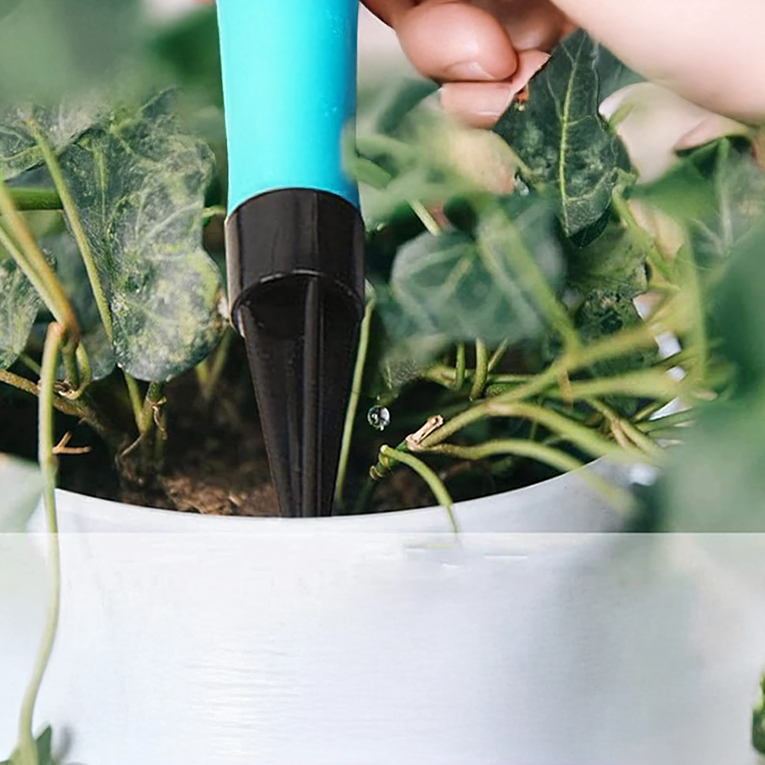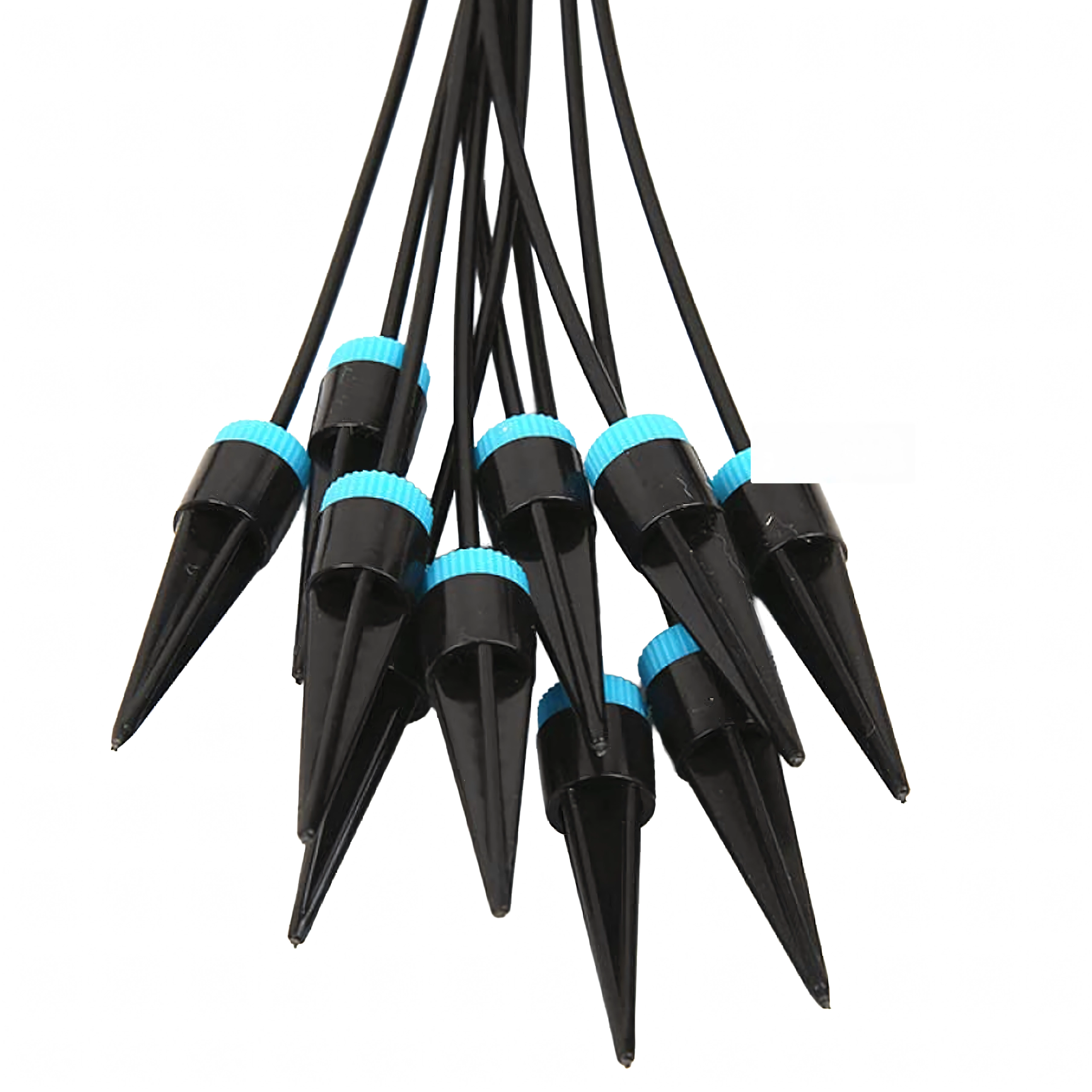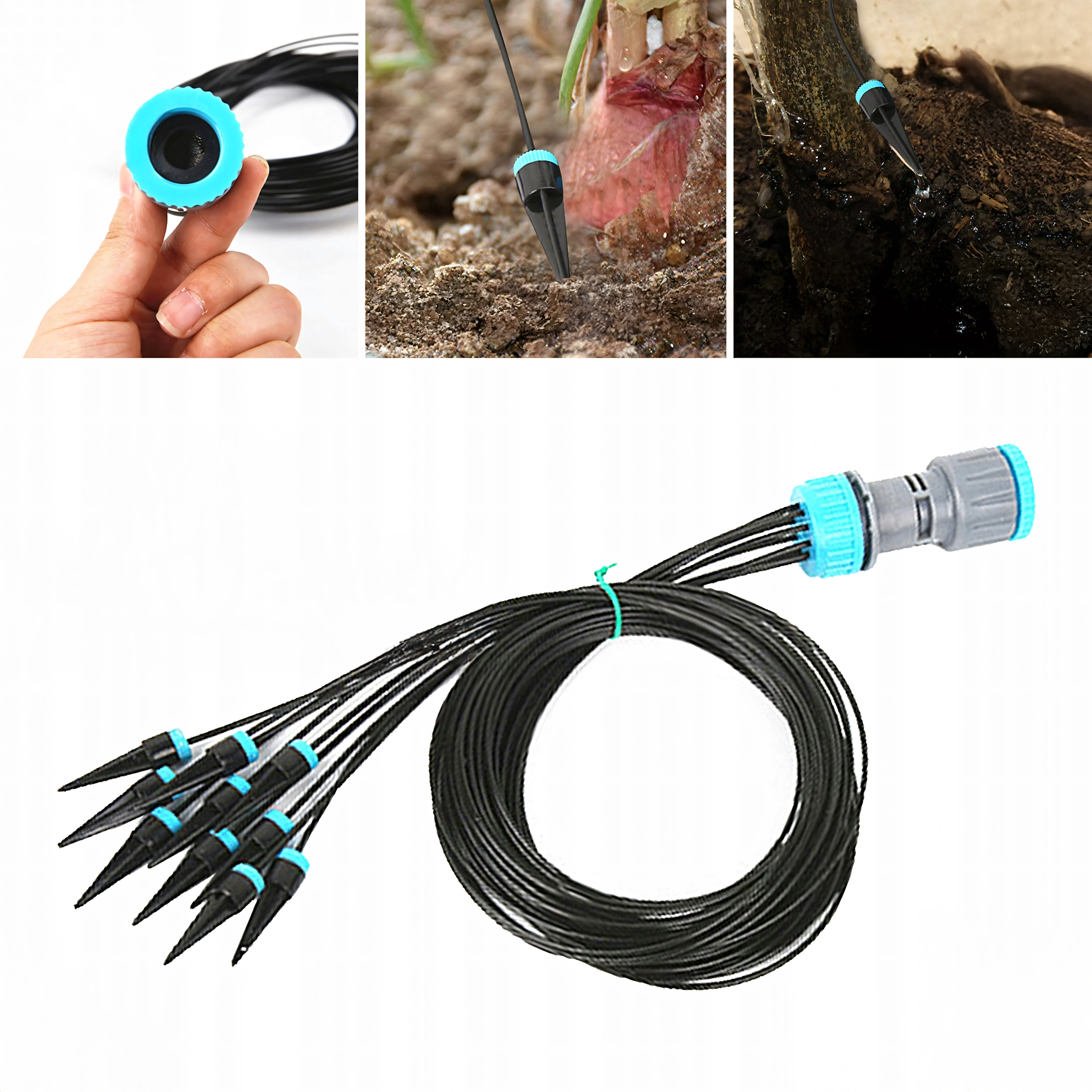 Les bagues de réglage bleues sur les émetteurs permettent d’adapter la quantité d’eau selon le type et la taille de la plante, d’une légère humidification à un arrosage plus abondant.