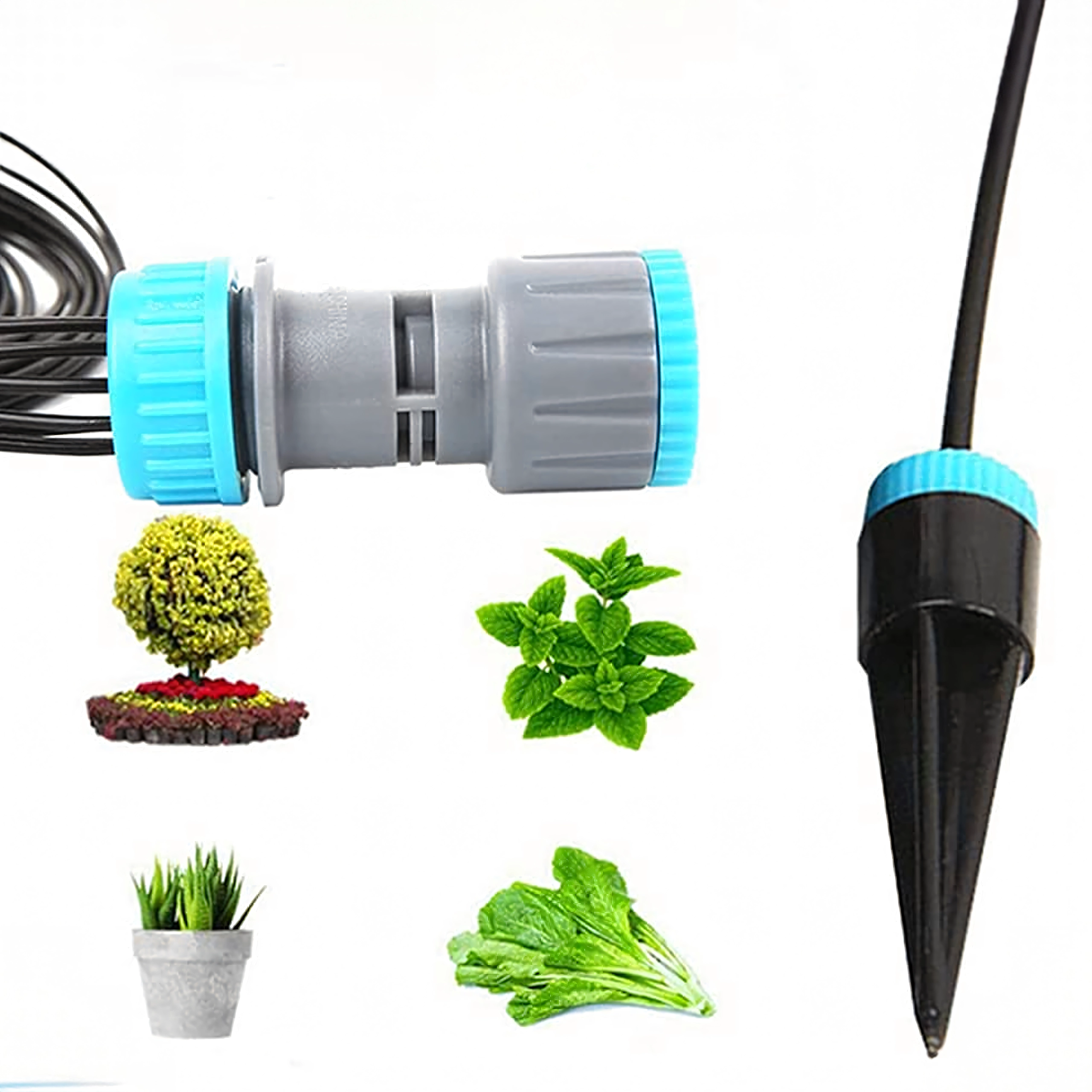 L’installation est rapide et intuitive – il suffit d’enfoncer les piquets dans le sol, de raccorder les tuyaux au répartiteur, puis celui-ci à la source d’eau. Le système convient aux pots, jardinières, serres et massifs de jardin, à l’intérieur comme à l’extérieur. Réglez le débit selon les besoins de chaque plante et économisez du temps et de l’eau.